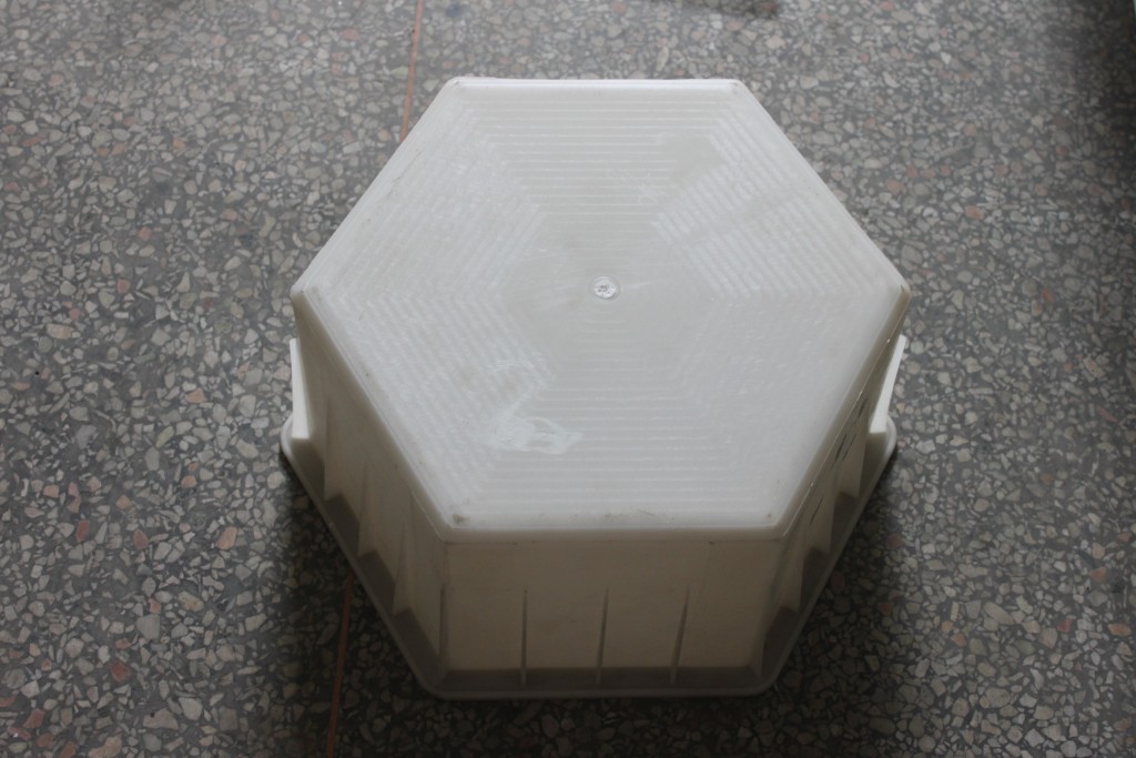 使用塑料實(shí)心六角護(hù)坡磚模具生產(chǎn)制造六角護(hù)坡磚的簡單工序: