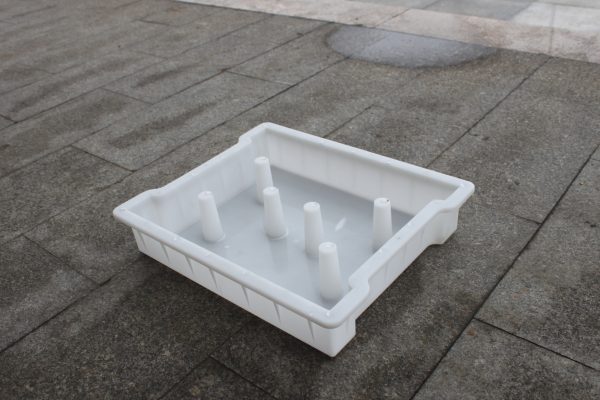 此款邊溝蓋板塑料模具采用塑料聚丙烯注塑加工而成,二端以缺口設(shè)計(jì),方便后期對(duì)于邊溝部分區(qū)域是否堵塞情況。而在蓋板塑料模具的內(nèi)部共設(shè)置了六個(gè)塑料堵頭,實(shí)際上就是水泥蓋板成品上的六個(gè)下水孔。