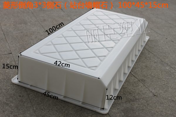 市場上一款極為少見的混凝土路側(cè)石模具,主要用來預(yù)制澆筑高鐵、鐵路站臺墻混凝土路側(cè)石之用。其中長度一邊為倒角設(shè)計,倒角低處尺寸為12厘米,高出尺寸為15厘米,根據(jù)實際倒角坡度精確規(guī)劃。
