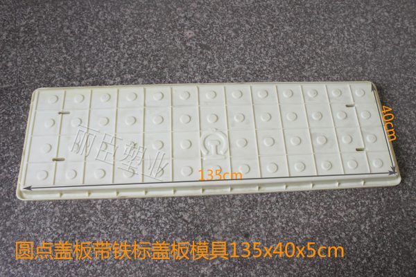 這款四孔圓點(diǎn)蓋板模具的尺寸為長135cm、寬40cm、高為5cm,用料上采用穩(wěn)定性較強(qiáng)的ABS為注塑原料,在澆筑水泥制品過程中能更好的保證砼制品模具不會(huì)發(fā)生變形,在對(duì)蓋板模具的四周添加了加強(qiáng)筋,小三角樣式更好的支撐塑料蓋板模具邊緣。