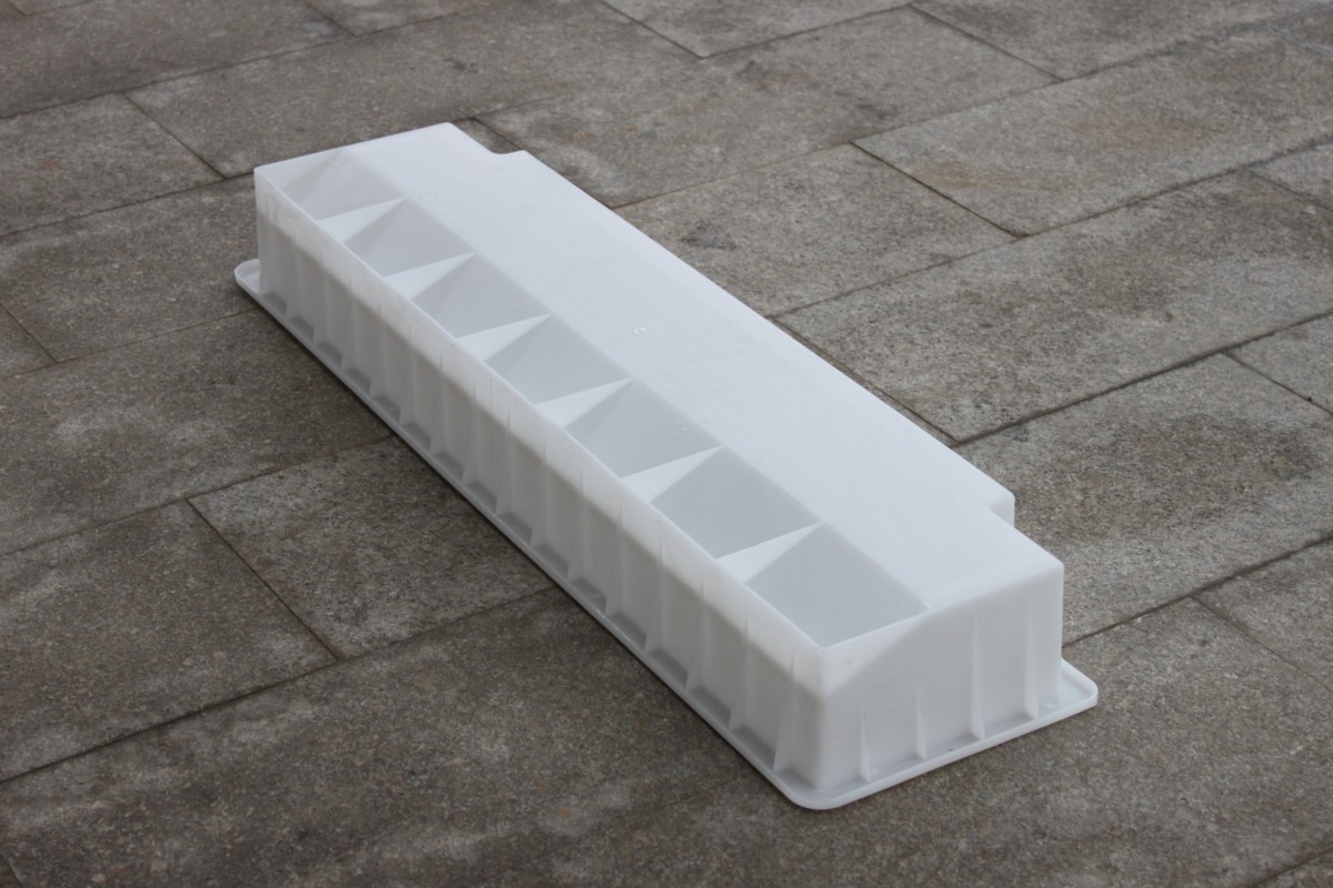 路側(cè)石模具使用純PP聚丙烯材料,以注塑工藝一次成型,主要特色為路側(cè)石外形為缺角及有一定坡度。成品整體工藝表面光滑,內(nèi)部結(jié)構(gòu)合理,水泥構(gòu)件脫模方面,在使用次數(shù)上更為耐用。主要使用在高鐵高速及市政公路道路側(cè)石的預(yù)制。
