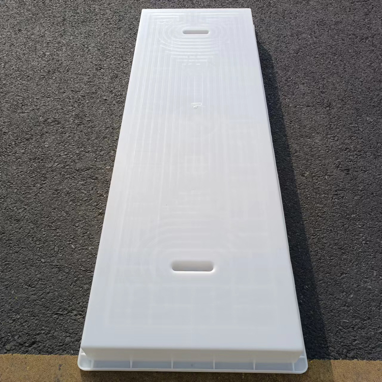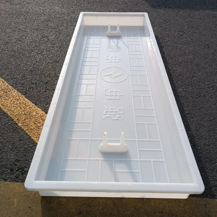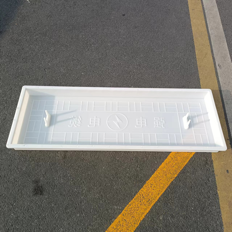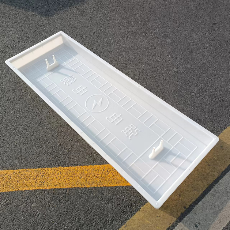 這款蓋板整體采用米白色pp材質(zhì)制成、也可以使用ABS材質(zhì)制成都可,模具有戴預(yù)埋件和不帶預(yù)埋件兩種,且做ABS材質(zhì)的模具標(biāo)準(zhǔn)尺寸為150cm*50cm*10cm,ABS材質(zhì)模具質(zhì)量比做PP材質(zhì)模具好一些,做PP材質(zhì)模具尺寸會縮小一些,主要由于材料的性質(zhì)不同,會縮小尺寸為千分之九。蓋板中間有戴電力標(biāo)志,兩側(cè)帶字,帶有“電力電纜”四字。
