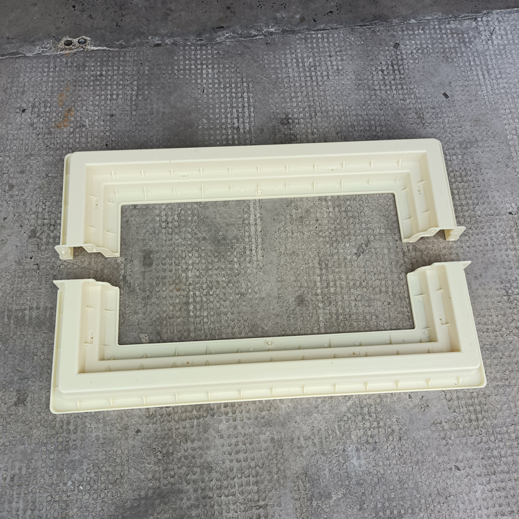 方井座塑料模具,模具采用拼接方式、為兩個組裝而成、寬度可以增加調(diào)節(jié),有設配件井座B,該長度、寬度尺寸為模具尺寸最外邊、包括翻邊。